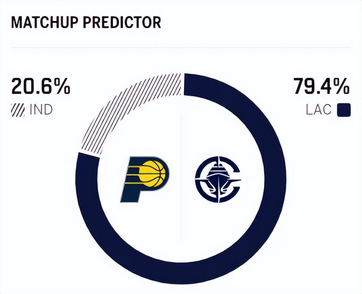 赛前,美媒ESPN对本场比赛进行了胜率预测,快船队胜率高达79.4% ,步行者胜率则仅有20.6% ,差距还挺明显。